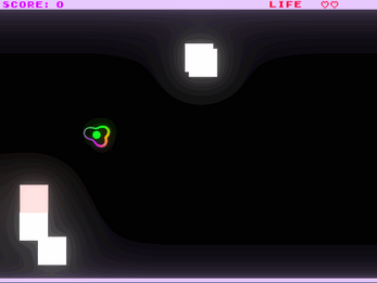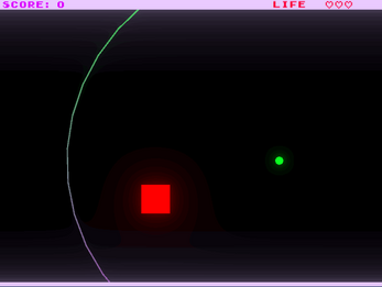 Aside from the bugs you mention in the description, the only thing I found weird was controlling the wibbly circle thingy by holding the mouse. Maybe have it at a set distance that expands even further whent he mouse is pressed, and returns to the default distance when released?